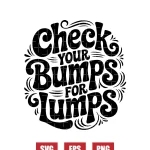 Looking for the perfect Check Your Bumps For Lumps Svg for your next crafting project? You’ve come to the right place! Whether you’re making custom t-shirts, mugs, tote bags, stickers, wall vinyl, or digital invitations – this design is ready to bring your ideas to life. Our files are compatible with popular software like Adobe Illustrator, Cricut Design Space, and Silhouette Studio.