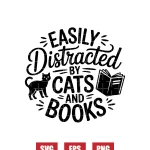 Easily Distracted By Cats and Books Svg
