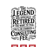 Looking for the perfect the Legend Has Officially Retired (if You Want to Talk You’ll Be Charged a Consulting Fee) Svg for your next crafting project? You’ve come to the right place! Whether you’re making custom t-shirts, mugs, tote bags, stickers, wall vinyl, or digital invitations – this design is ready to bring your ideas to life. Our files are compatible with popular software like Adobe Illustrator, Cricut Design Space, and Silhouette Studio.
